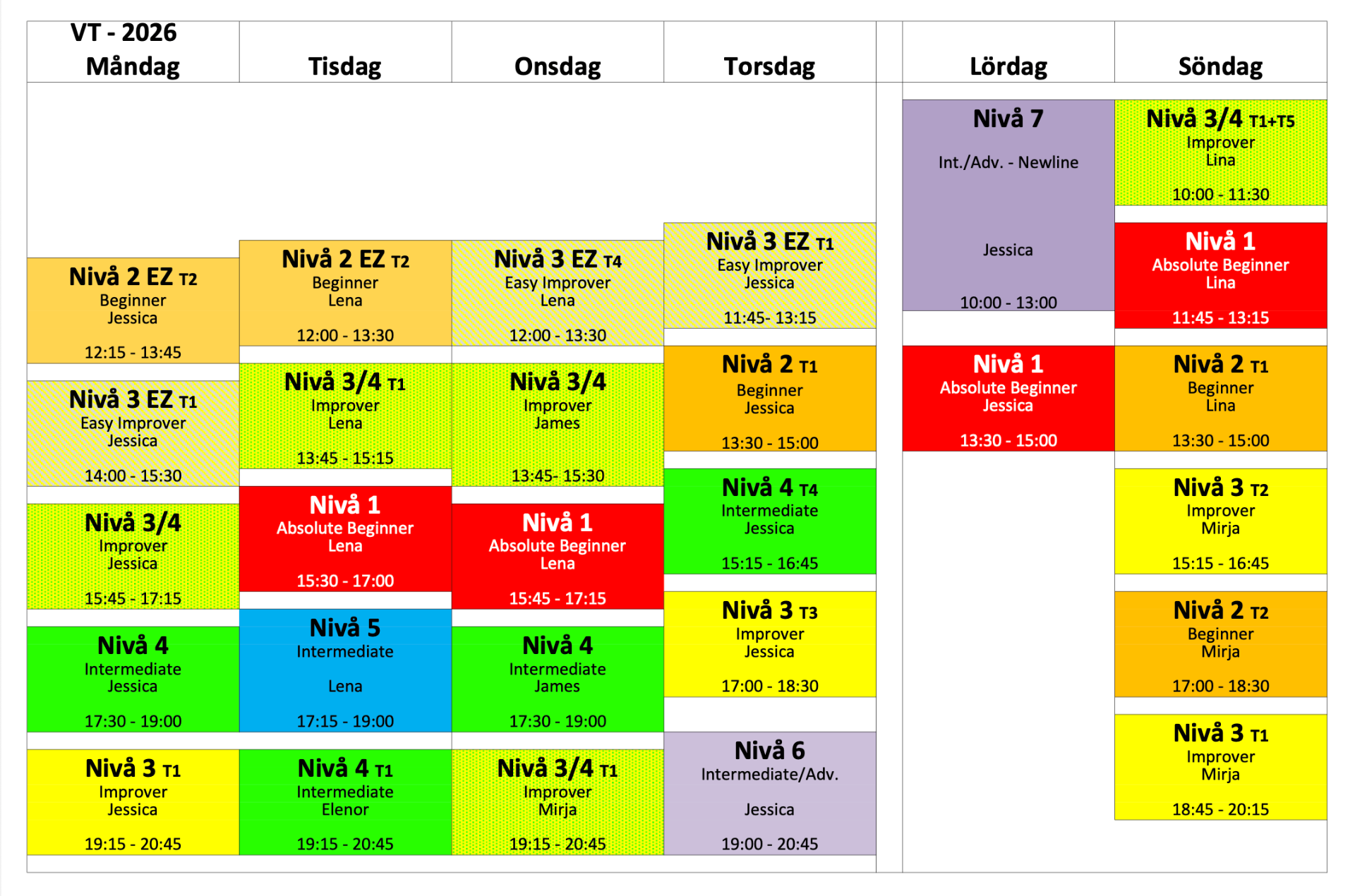 Kursprogram, Översikts-schema och Bokningslänk för våren 2026.