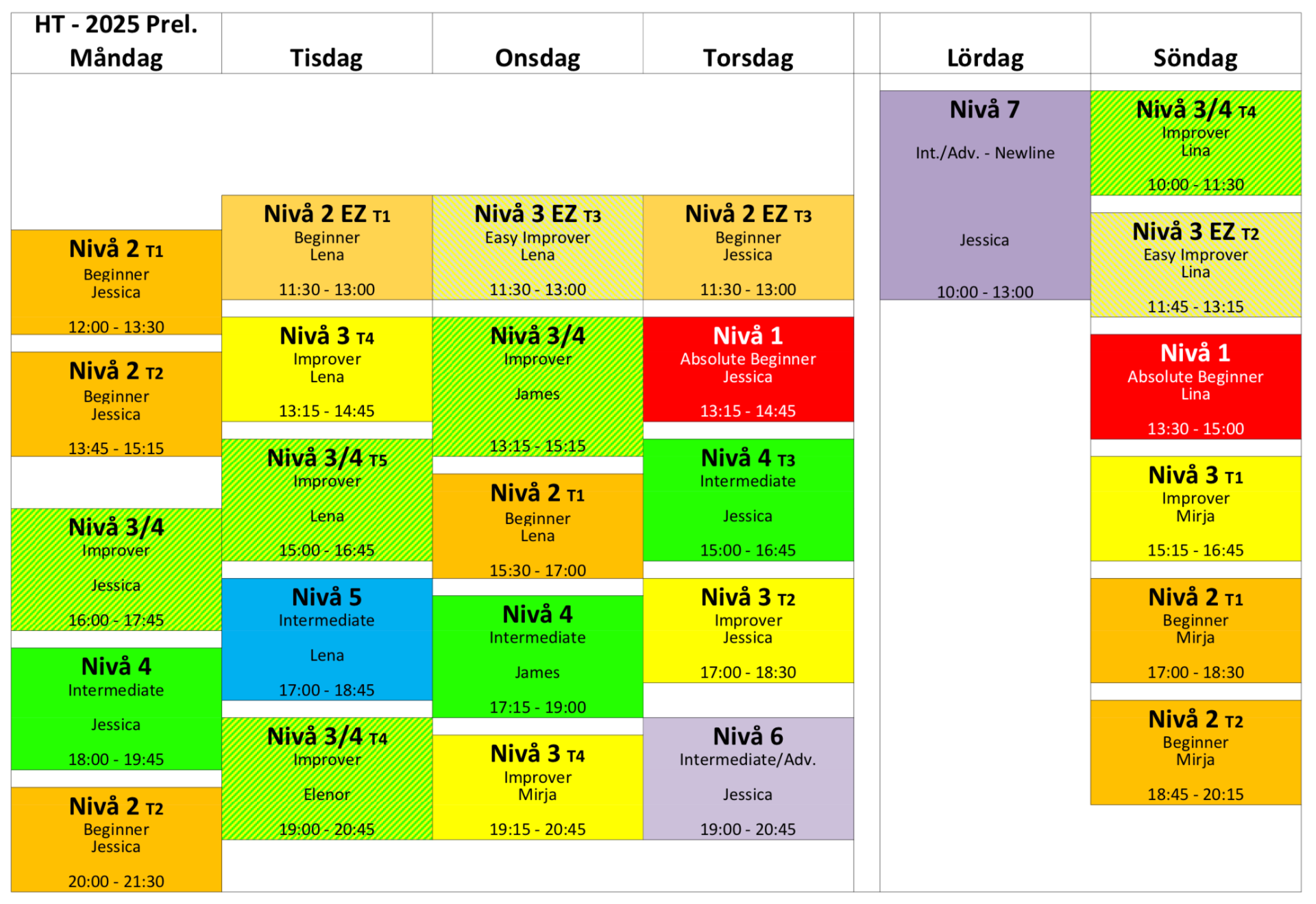 För att se schemat för pågående termin HT-2025, scrolla ner till "Arkiv"