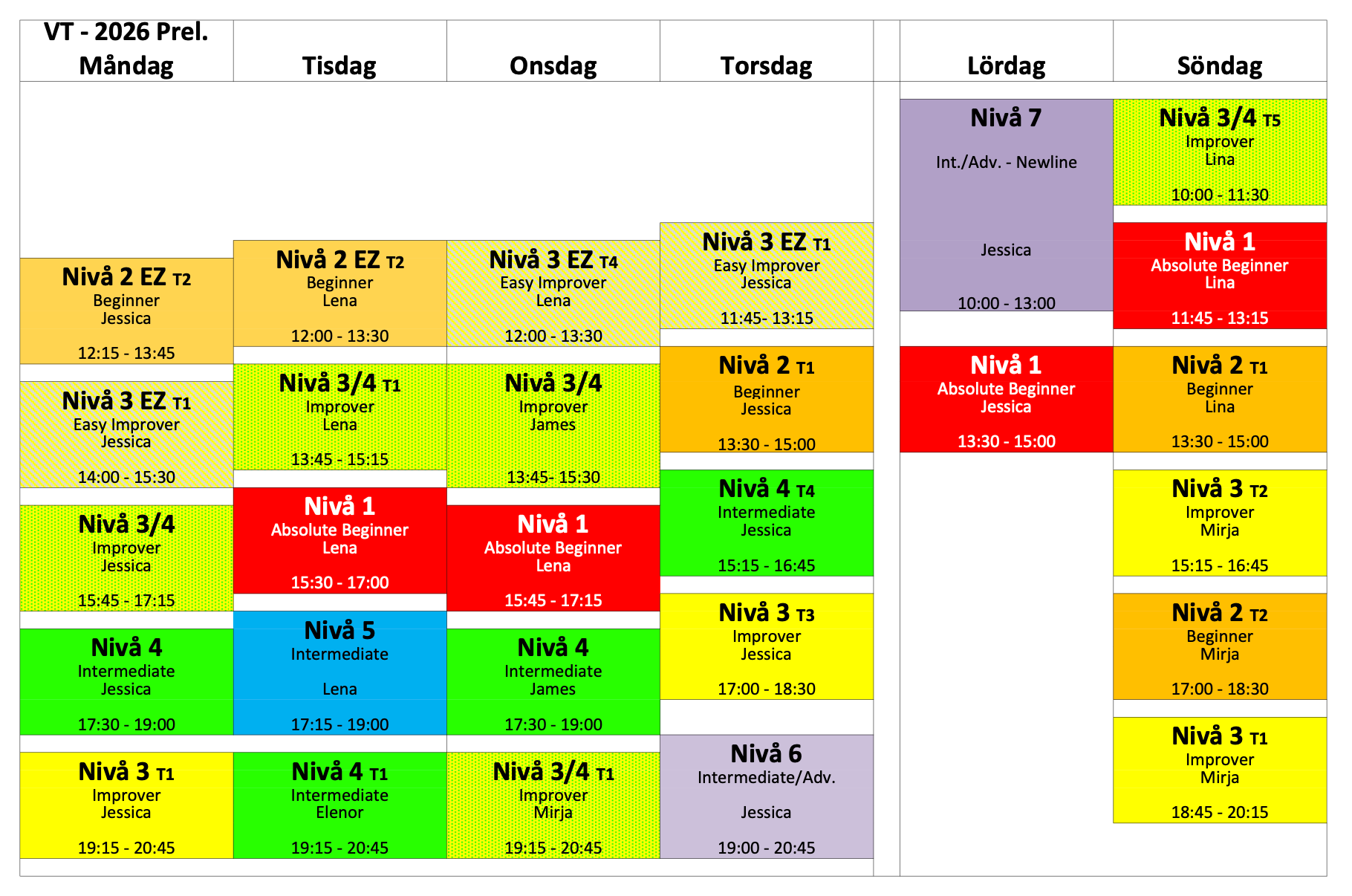 Information och beskrivning av våra kursnivåer